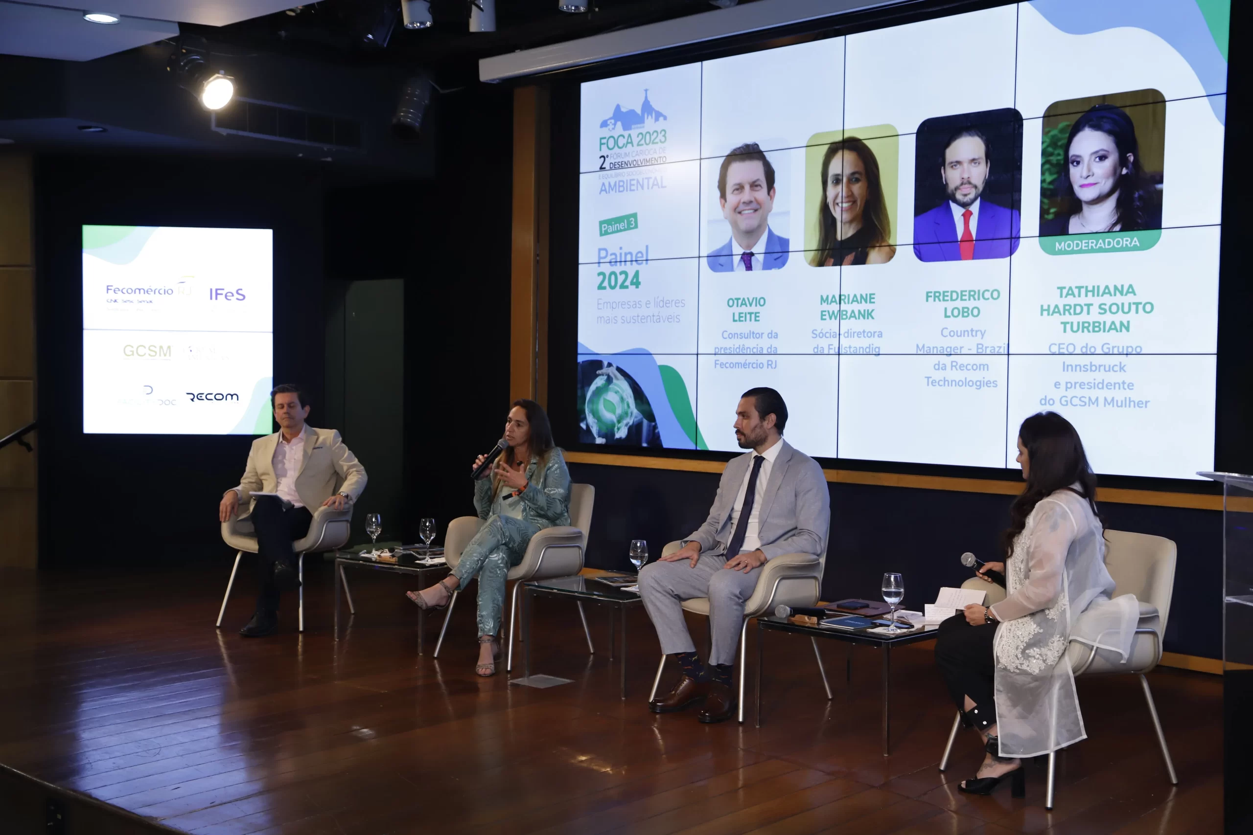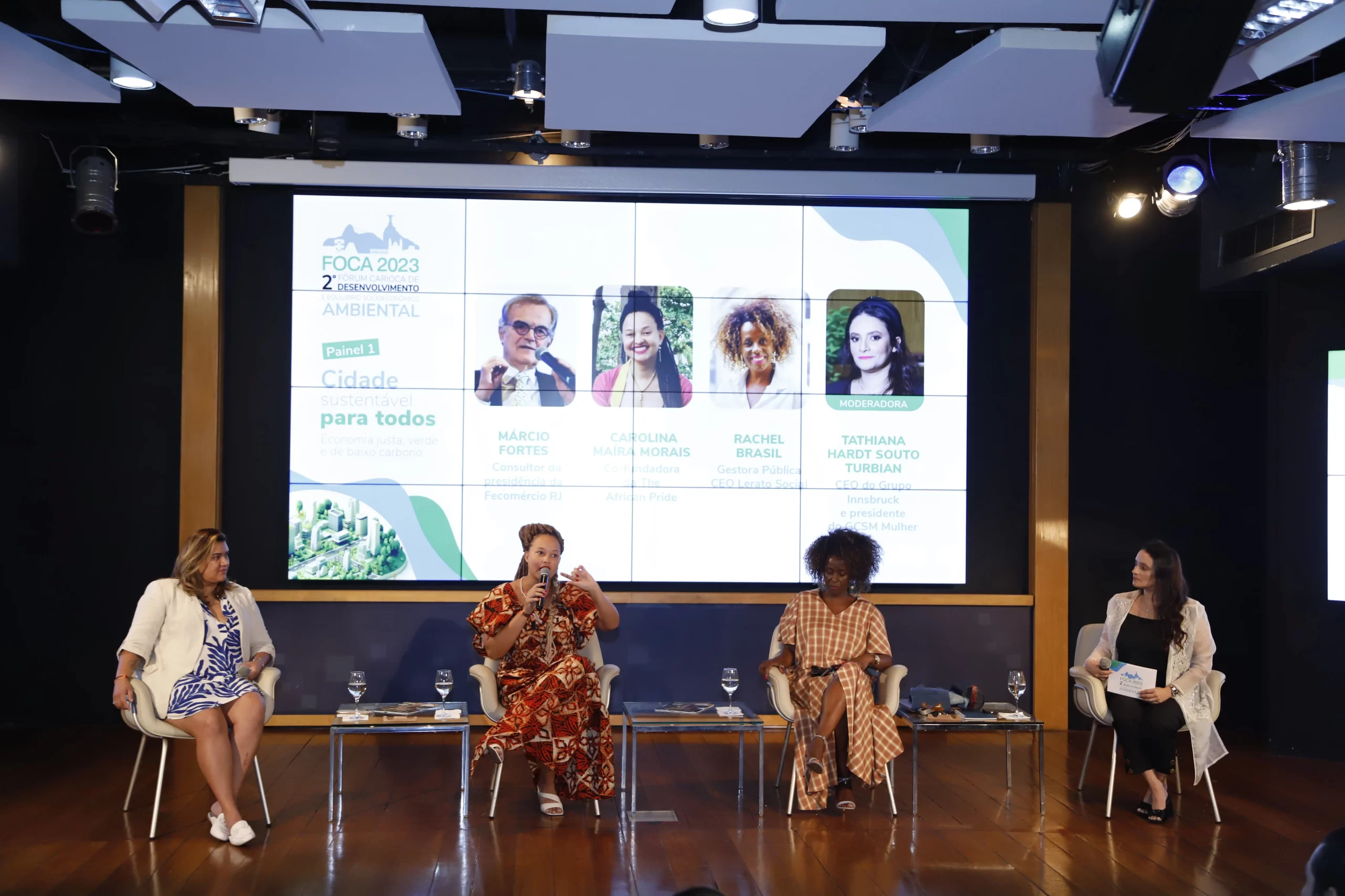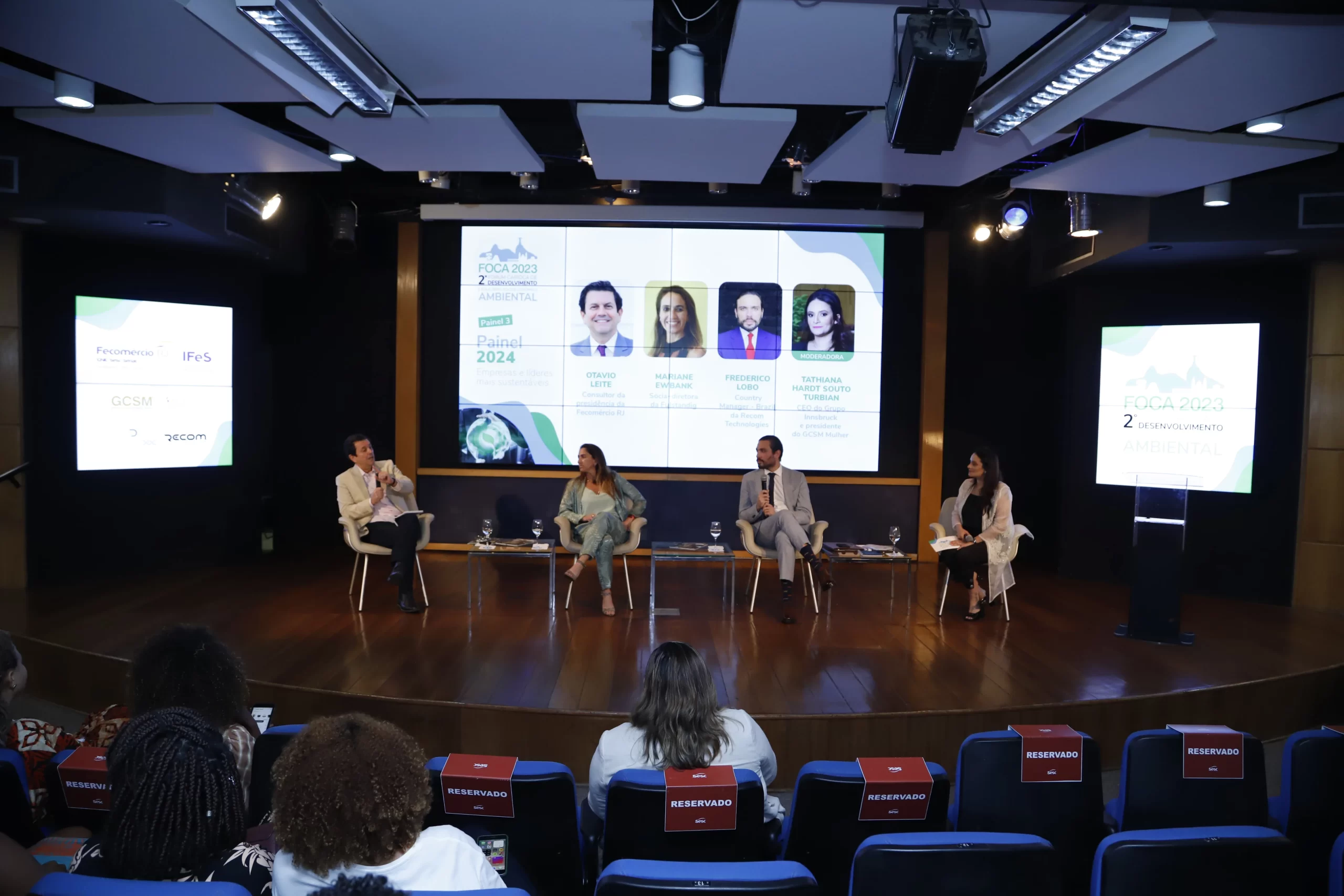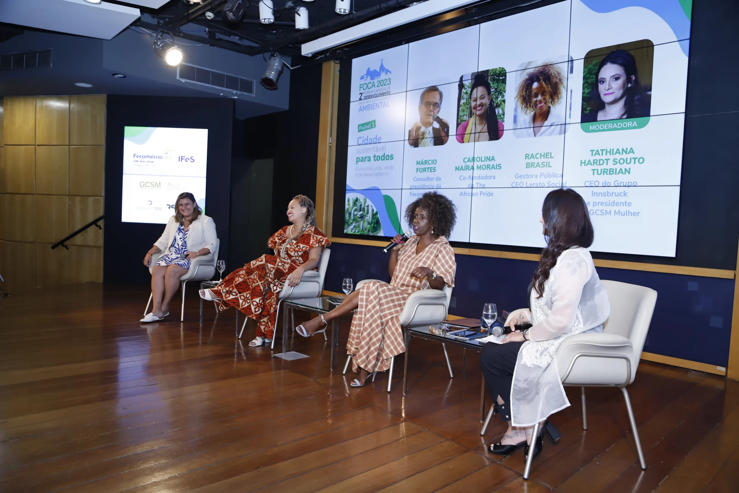 ecológico, mudanças climáticas e diversidade. Com sede no auditório da FECOMERCIO RJ no Flamengo, ele foi composto por três painéis. No primeiro foi discutido a sustentabilidade no território do Rio de Janeiro de forma democrática a partir de debates e experiências e projetos dos painelistas, tais como ocupação de áreas ambientais sensíveis, diversidade e inclusão nas empresas, projetos sustentáveis e geração de renda através da moda circular e sustentável.