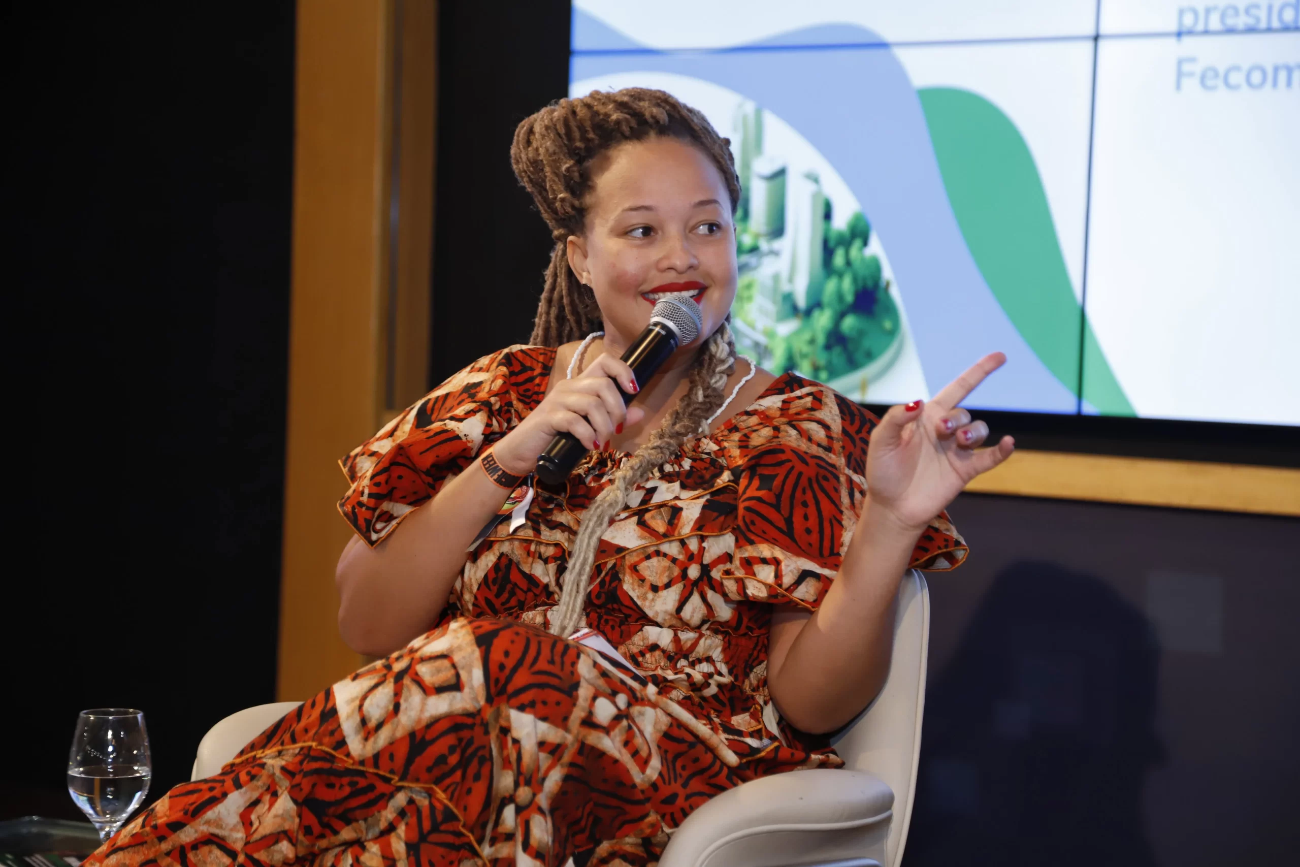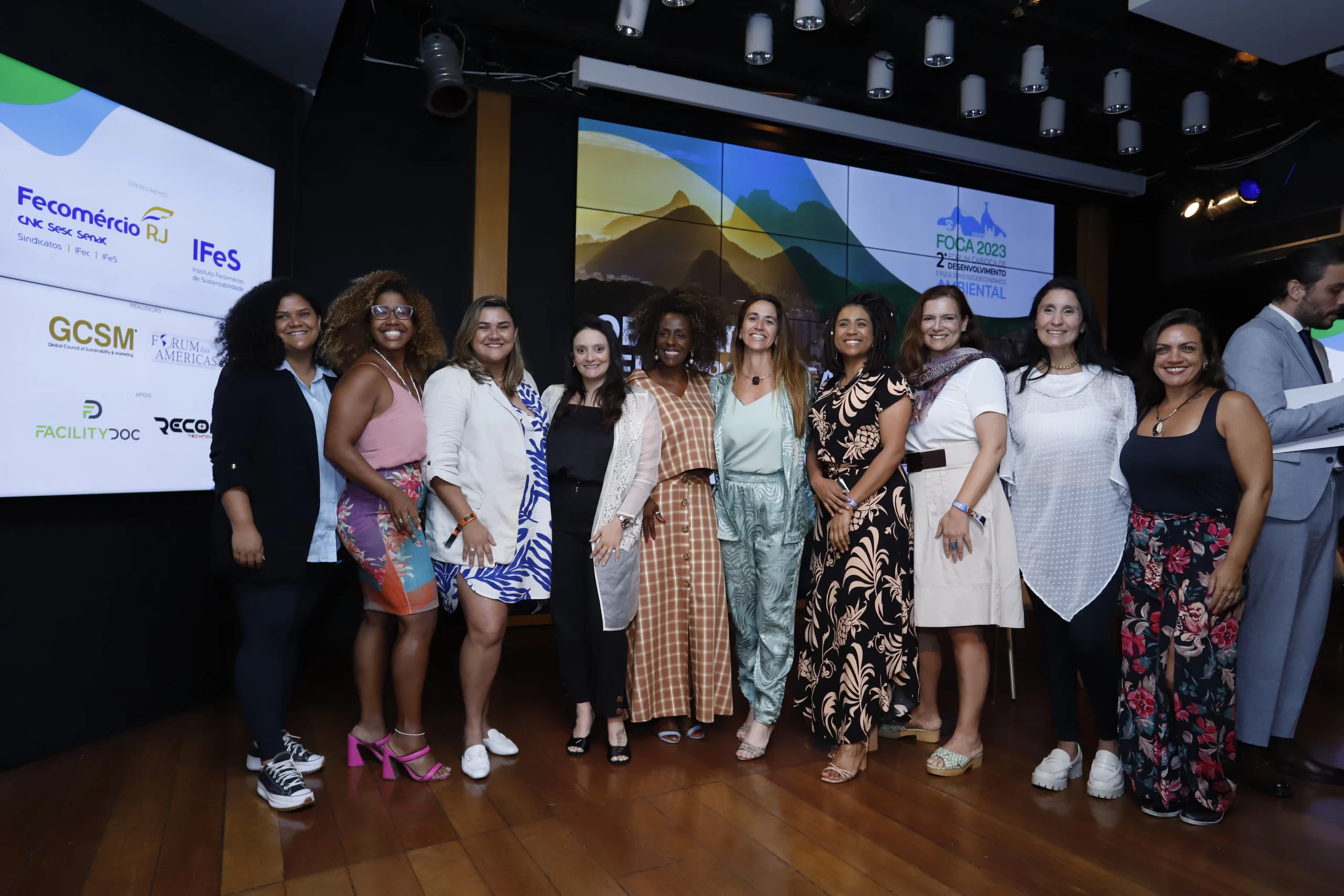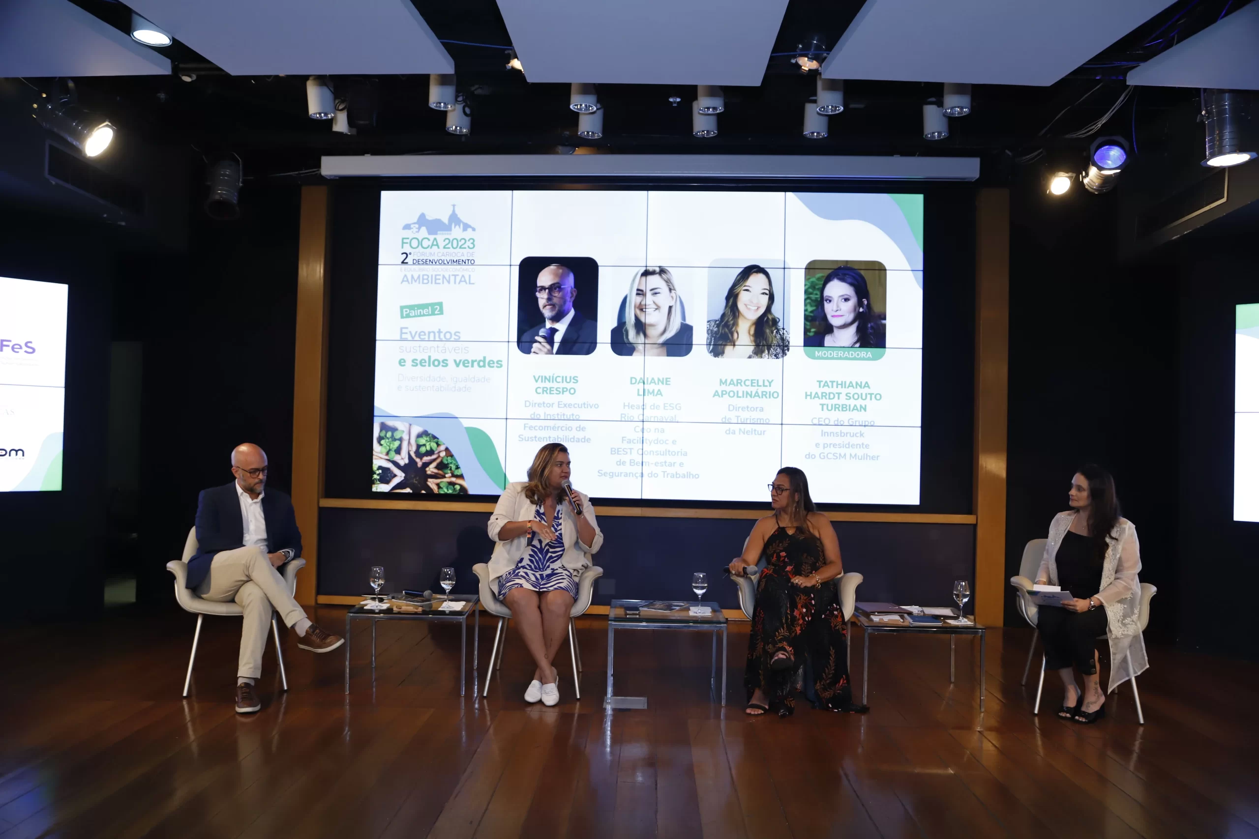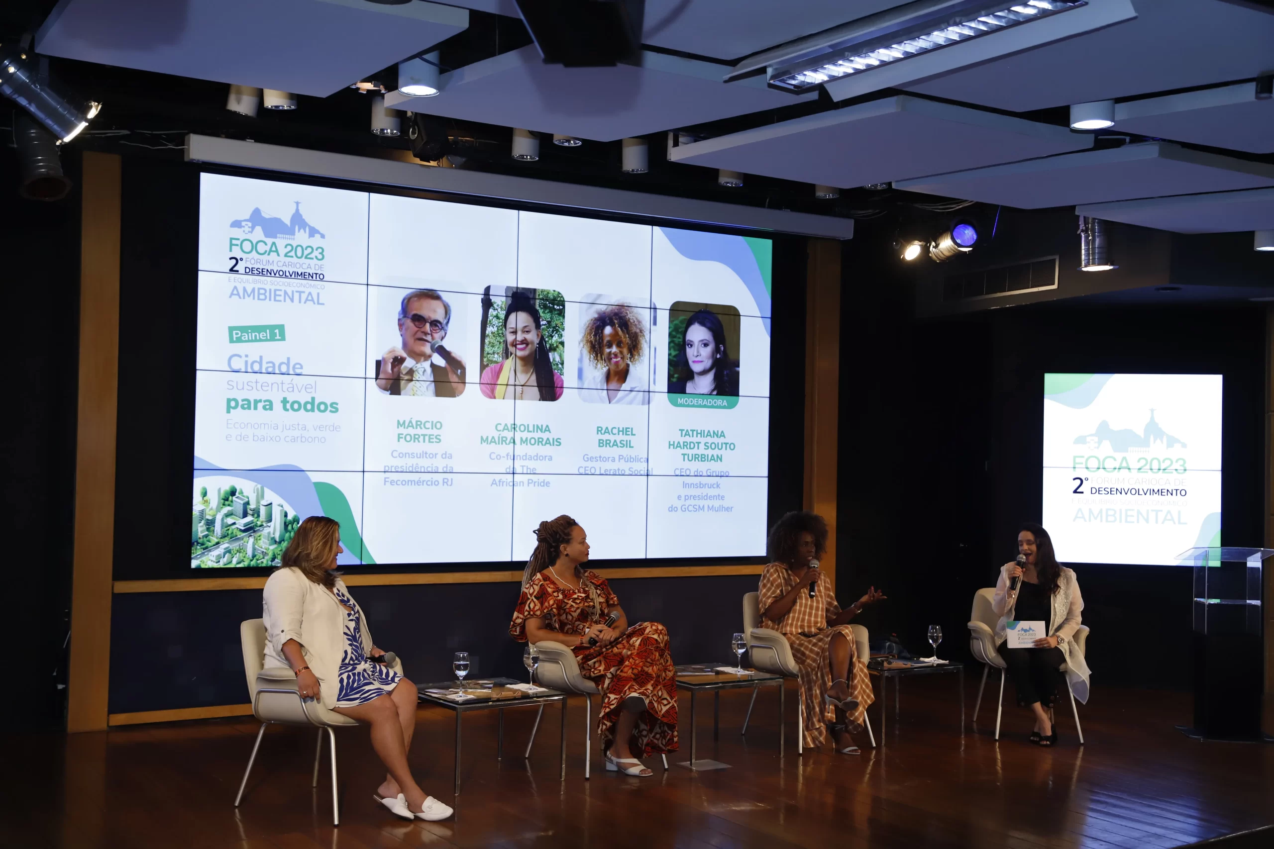 ecológico, mudanças climáticas e diversidade. Com sede no auditório da FECOMERCIO RJ no Flamengo, ele foi composto por três painéis. No primeiro foi discutido a sustentabilidade no território do Rio de Janeiro de forma democrática a partir de debates e experiências e projetos dos painelistas, tais como ocupação de áreas ambientais sensíveis, diversidade e inclusão nas empresas, projetos sustentáveis e geração de renda através da moda circular e sustentável.