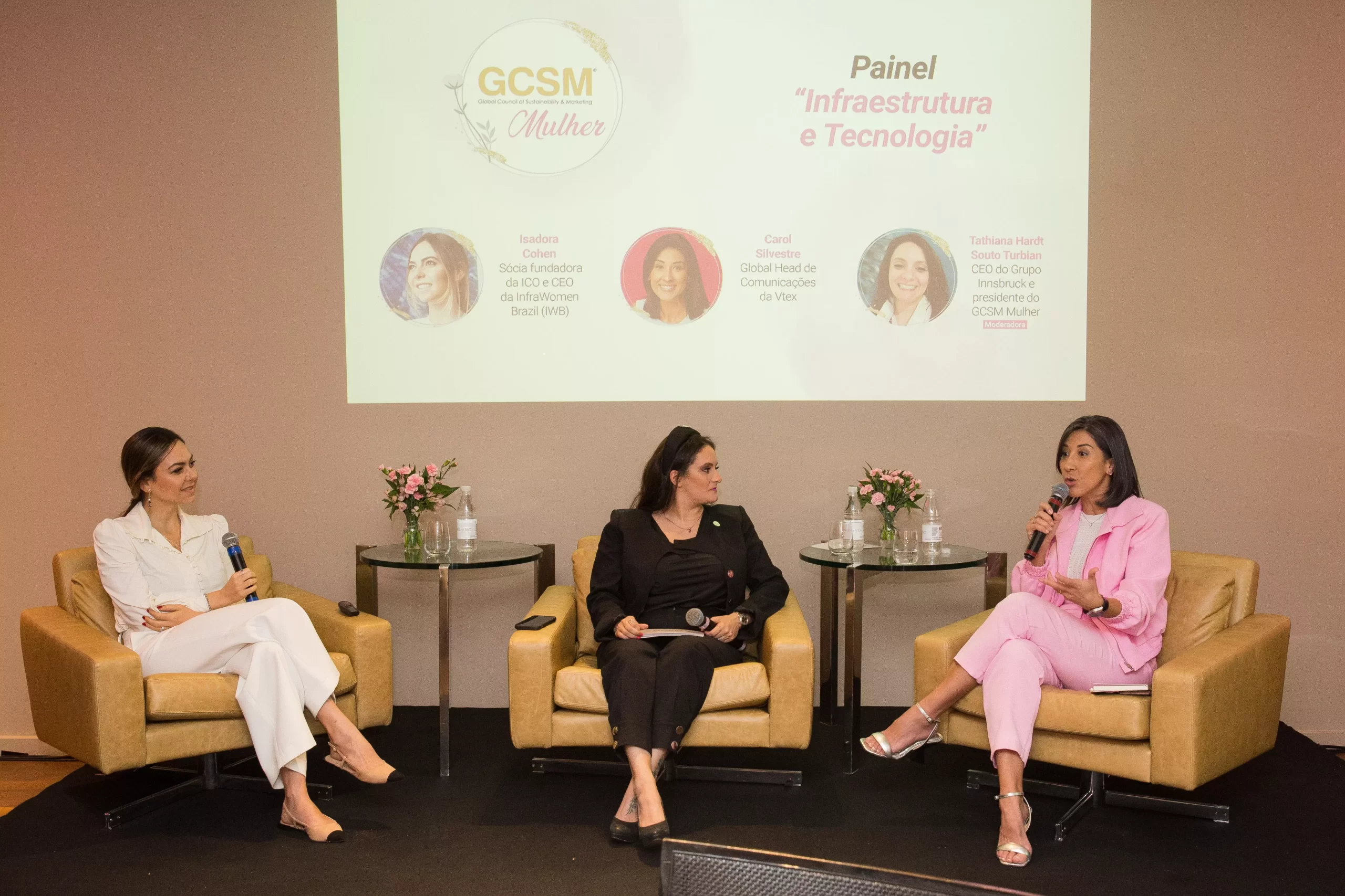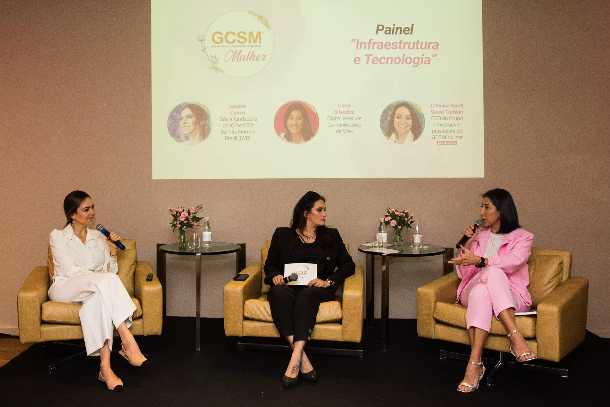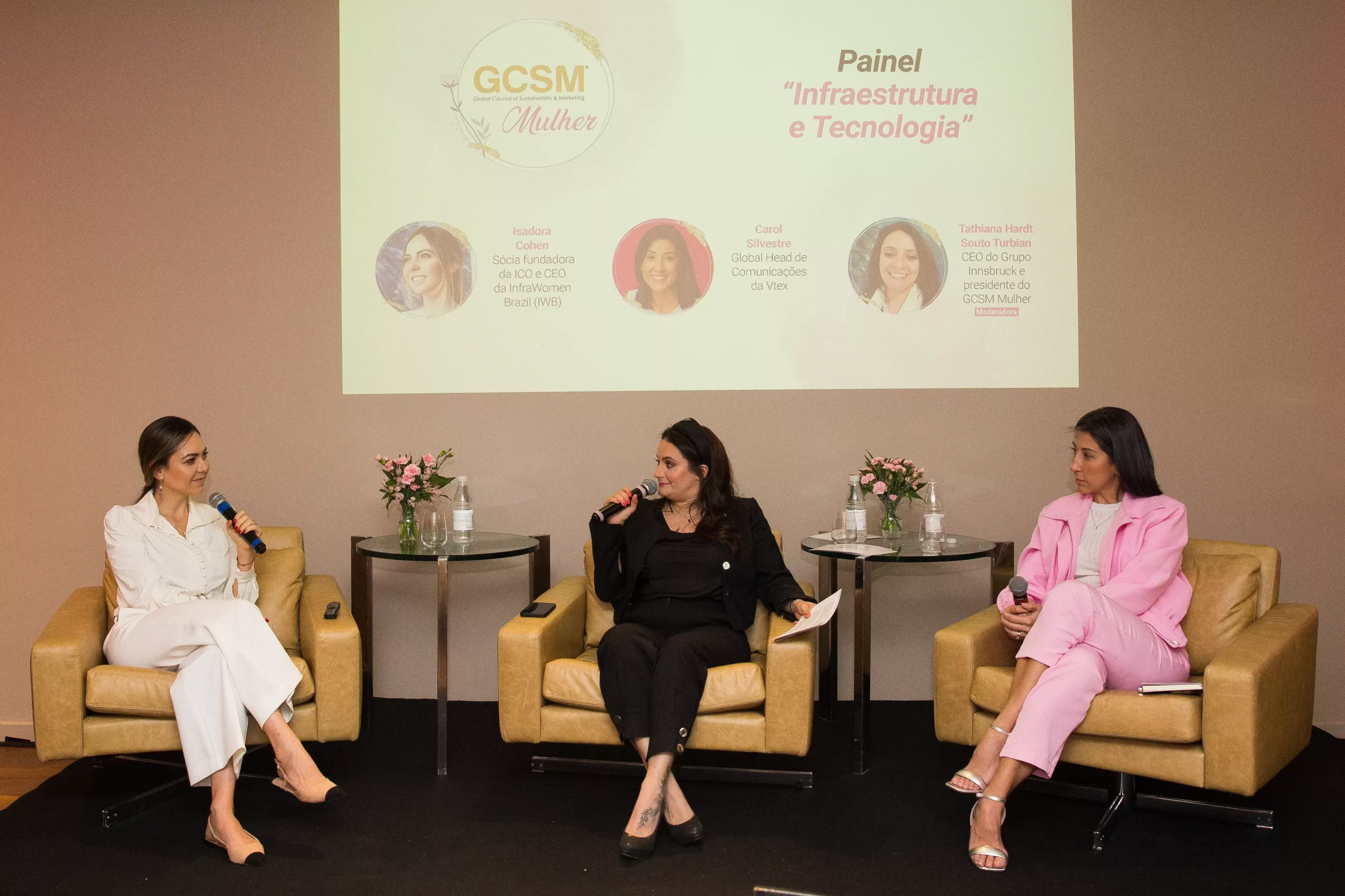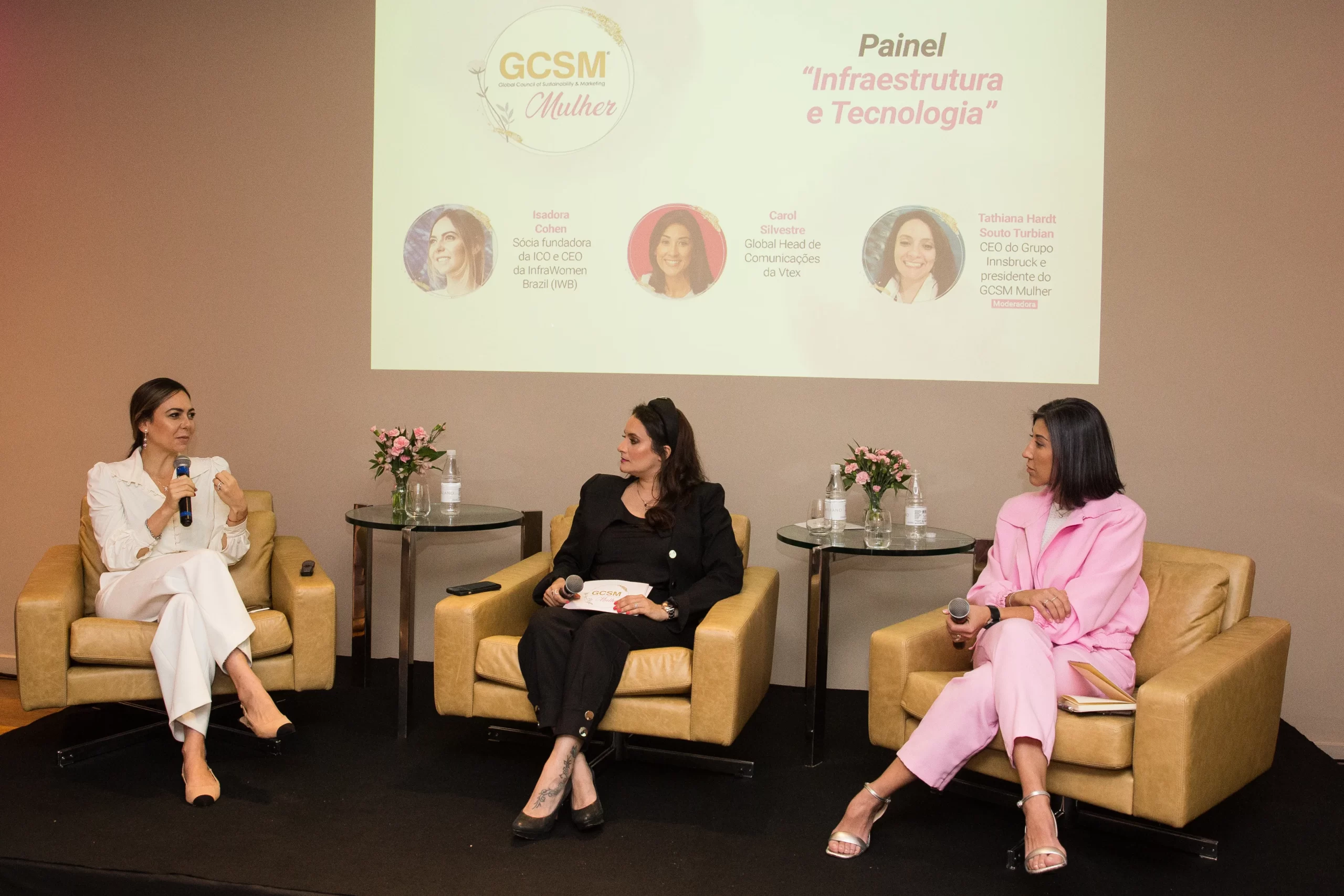 A sequência foi com painéis temáticos que abordaram na prática os dados apresentados. O painel sobre infraestrutura e tecnologia, trouxe por Carol Silvestre, Global Head de Comunicação da VTEX, e Isadora Chansky Cohen, Sócia Fundadora da ICO Consultoria e CEO da Infra Women Brazil (IWB).