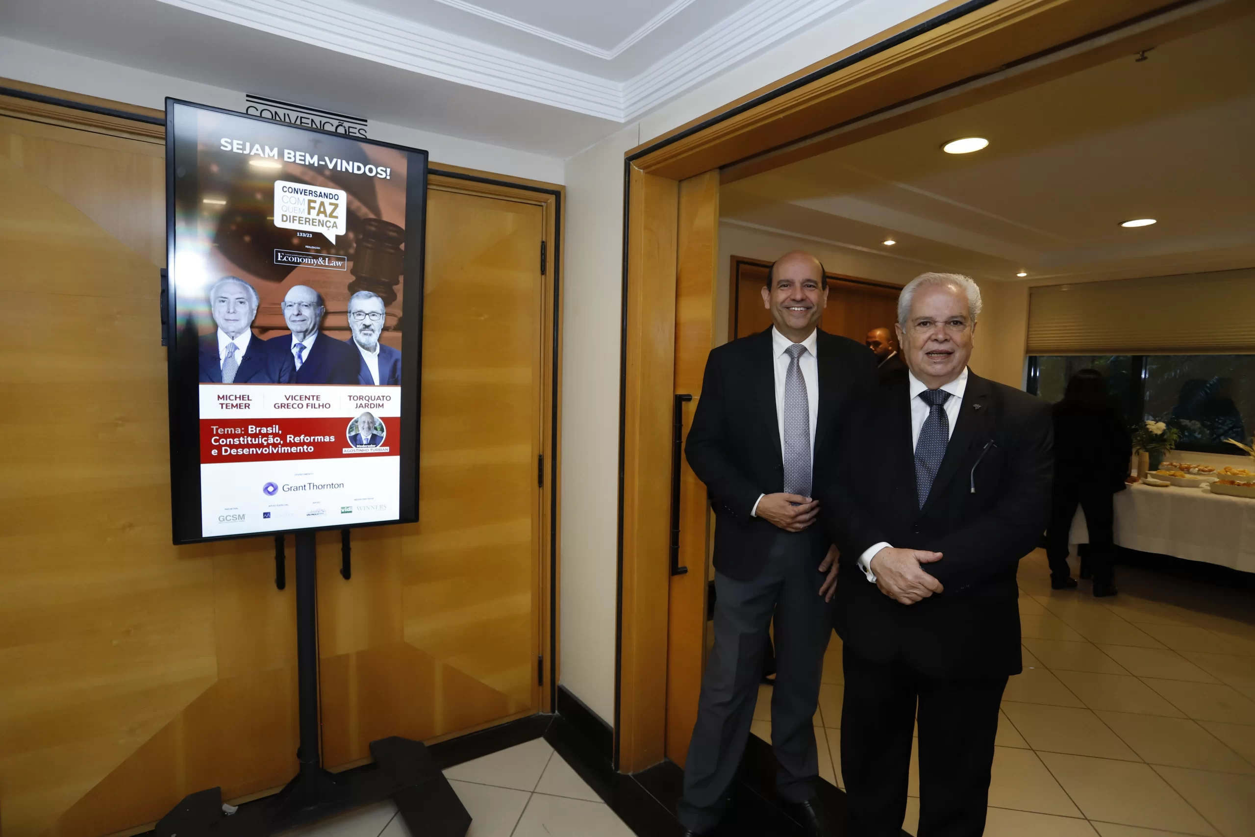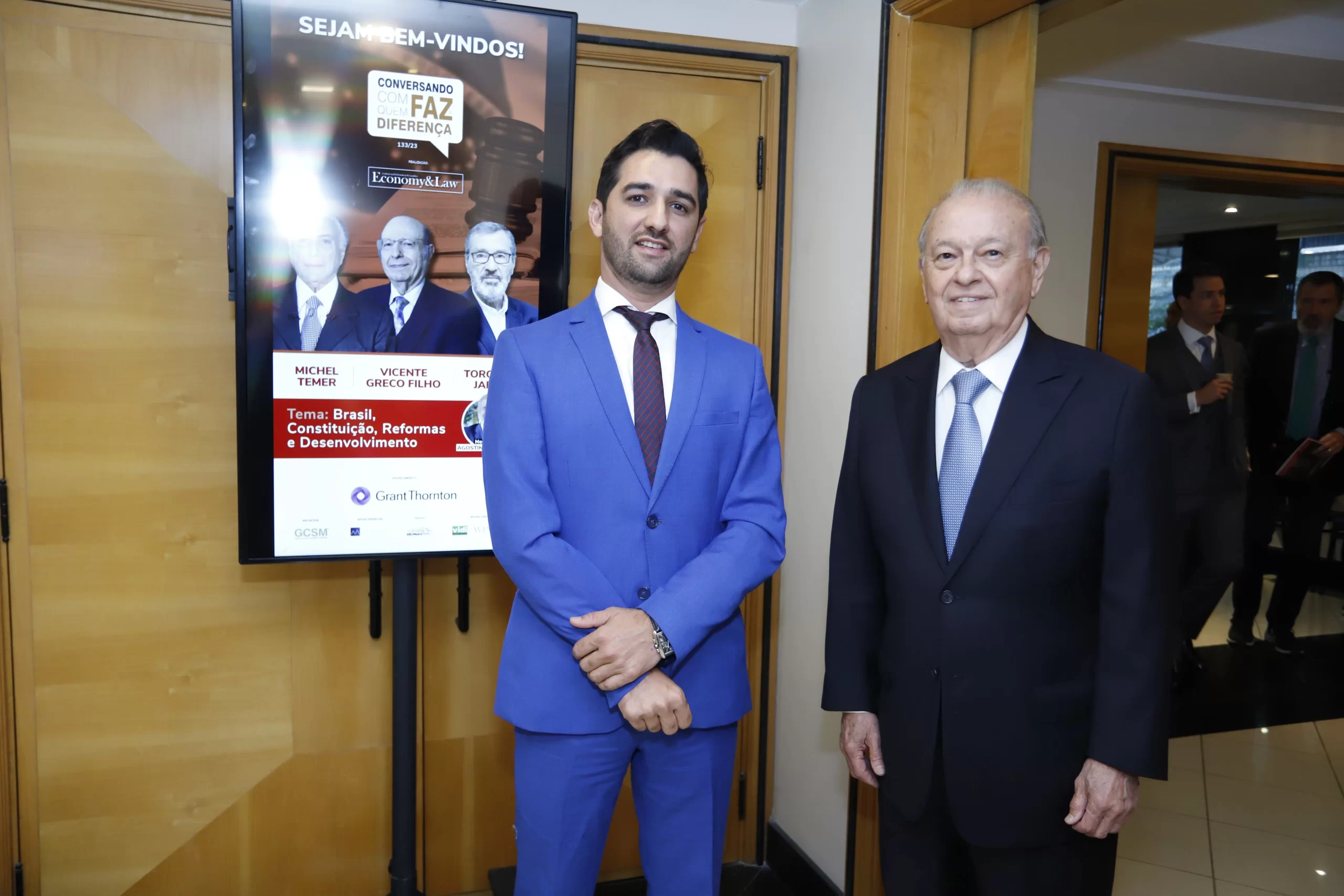 O evento intitulado “Brasil, Constituição, Reformas e Desenvolvimento” teve a presença de várias autoridades, especialmente do meio jurídico. Falaram ao público, Michel Temer, ex-presidente da República, advogado, ex-professor de Direito Constitucional e autor de cinco livros, Vicente Greco Filho, advogado líder do Greco Filho Sociedade de Advogados, jurista e autor de publicações em áreas variadas do Direito, além do advogado, jurista, ex-ministro da Justiça no governo Temer, ex-ministro do Tribunal Superior Eleitoral (TSE) e ex-ministro da Controladoria Geral da União (CGU).