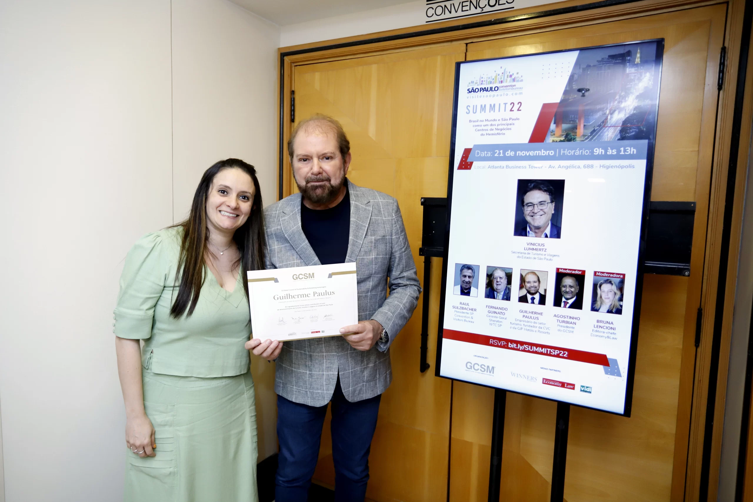 O evento teve a presença do secretário de Turismo e Viagens do Estado de São Paulo, Vinicius Lummertz, Raul Sulzbacher, presidente do Conselho do São Paulo Convention & Visitors, Fernando Guinato, gerente geral do Sheraton WTC-SP, Guilherme Paulus, empresário do setor de turismo e fundador da CVC e da GJP Hoteis e Resorts, Agostinho Turbian, presidente do GCSM, e da editora-chefe da revista Economy&Law, Bruna Lencioni – esses dois últimos moderaram o Summit.